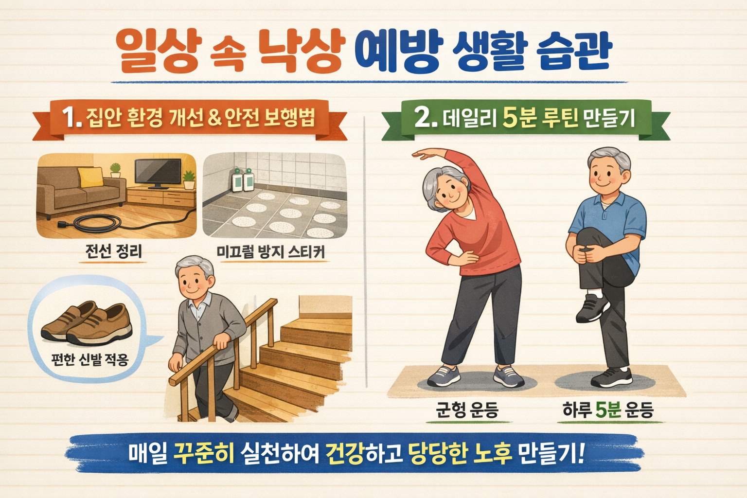 🔗 관련 자료: 대한정형외과학회 낙상 예방 가이드 | 국가건강정보포털 중장년 운동수칙